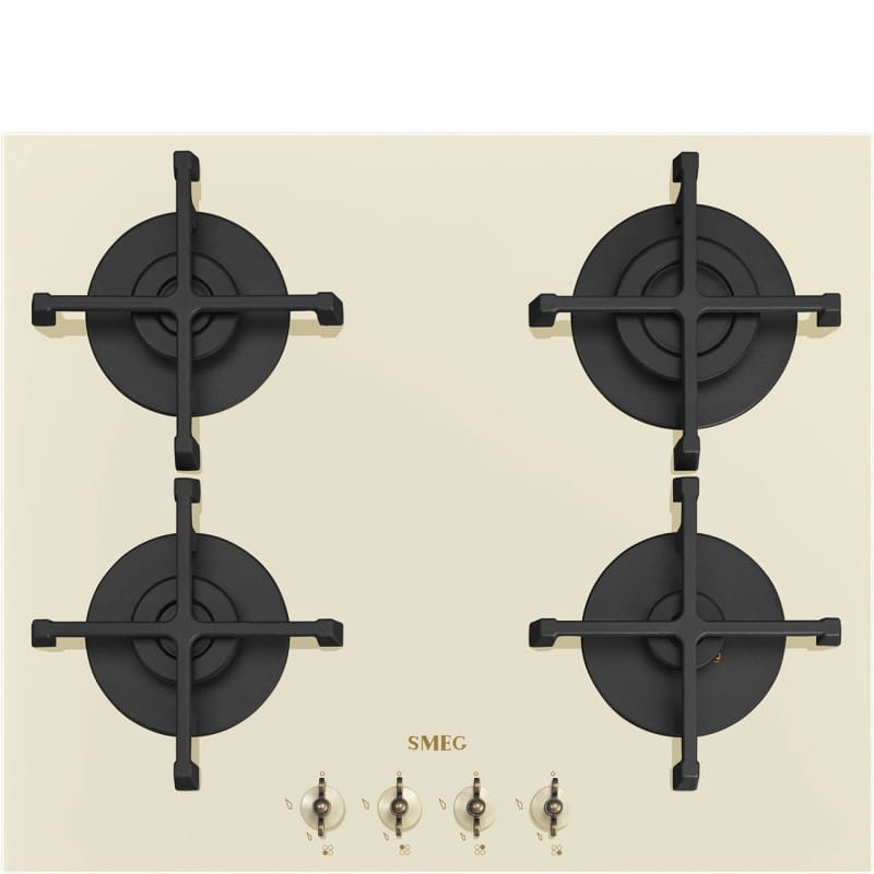 Płyta gazowa SMEG PV864PO o szerokości 60 cm posiada 4 palniki i żeliwne ruszty. Wyposażona jest w zintegrowaną zapalarkę w pokrętle oraz zabezpieczenie przeciwwypływowe gazu, co zwiększa bezpieczeństwo użytkowania. To praktyczne i stylowe rozwiązanie do każdej kuchni.
