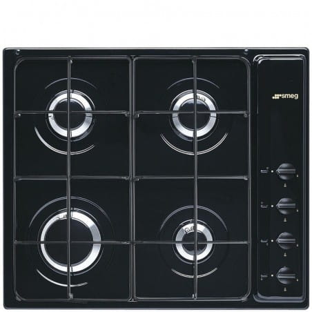 Płyta gazowa Smeg S64SN o szerokości 58,5 cm posiada 4 palniki i emaliowane ruszty. Wyposażona jest w zintegrowaną zapalarkę w pokrętle oraz zabezpieczenie przeciwwypływowe gazu, co zwiększa bezpieczeństwo użytkowania.