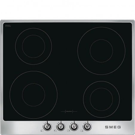 Płyta indukcyjna Smeg SI964XM o szerokości 60 cm posiada 4 strefy grzejne i 9 poziomów mocy. Wyposażona jest w funkcje automatycznego wyłączenia, zabezpieczenia przed przegrzaniem oraz blokadę bezpieczeństwa. Rozpoznaje naczynie i jego średnicę, co ułatwia gotowanie. Sterowanie odbywa się za pomocą pokręteł.