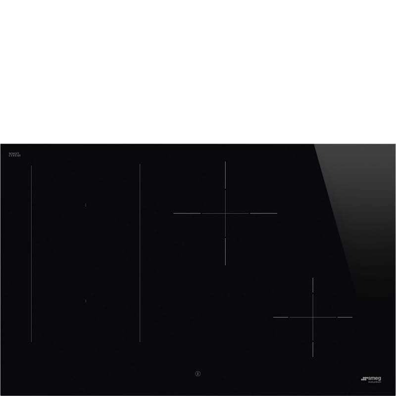 Płyta indukcyjna Smeg SIM3844D Universal o szerokości 80 cm z czarnego szkła ceramicznego posiada 4 strefy grzejne, w tym jedną Multizone. Wyposażona jest w funkcję Bridge, która pozwala na łączenie pól grzejnych w jedną strefę. Płyta oferuje 9 poziomów mocy, funkcję Booster dla szybkiego nagrzewania, automatyczne wykrywanie wielkości naczyń, timer oraz blokadę bezpieczeństwa. Sterowanie odbywa się za pomocą białego panelu dotykowego z suwakami.